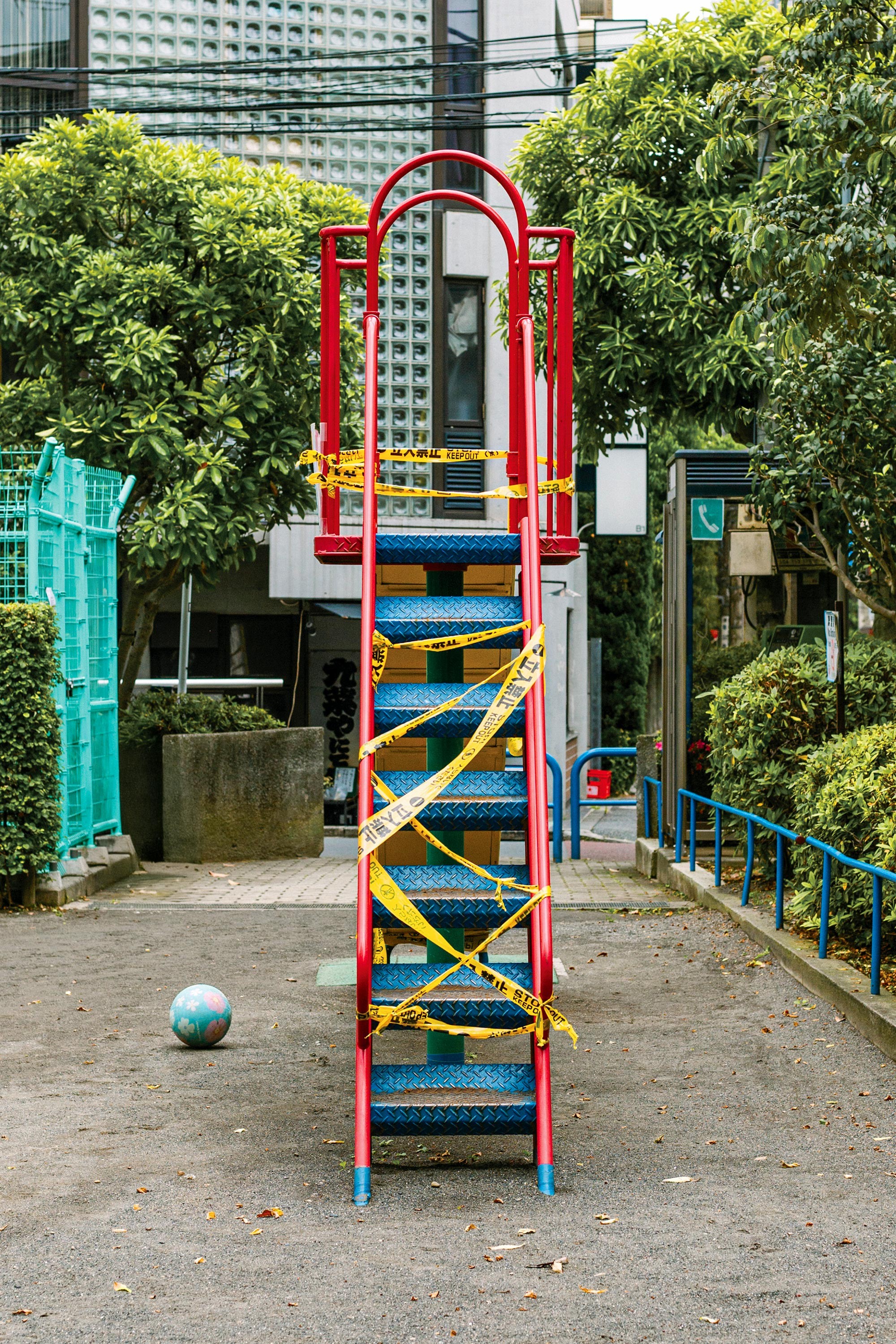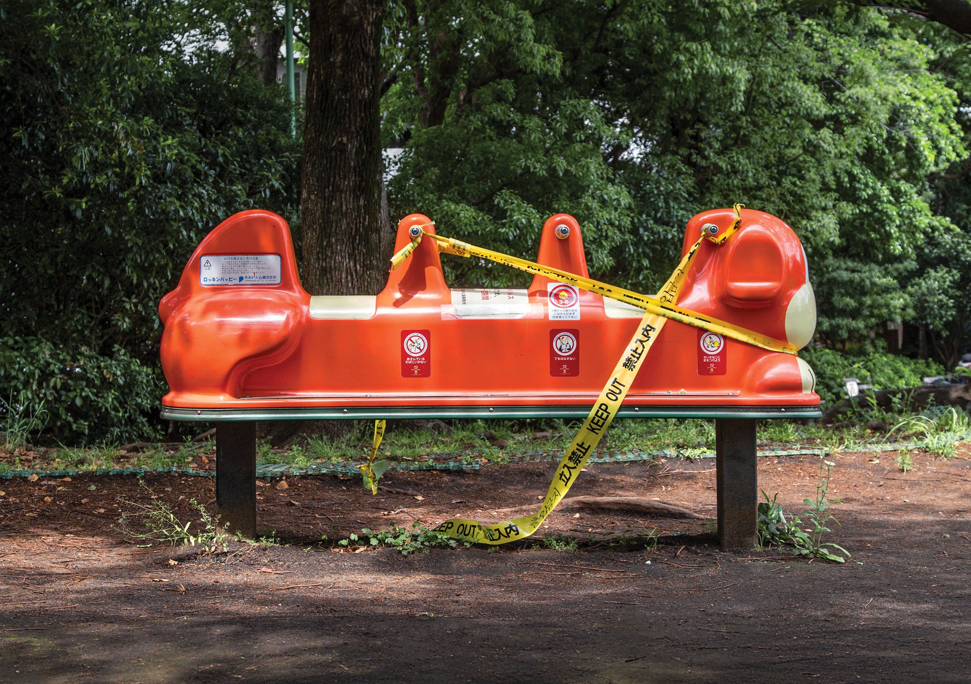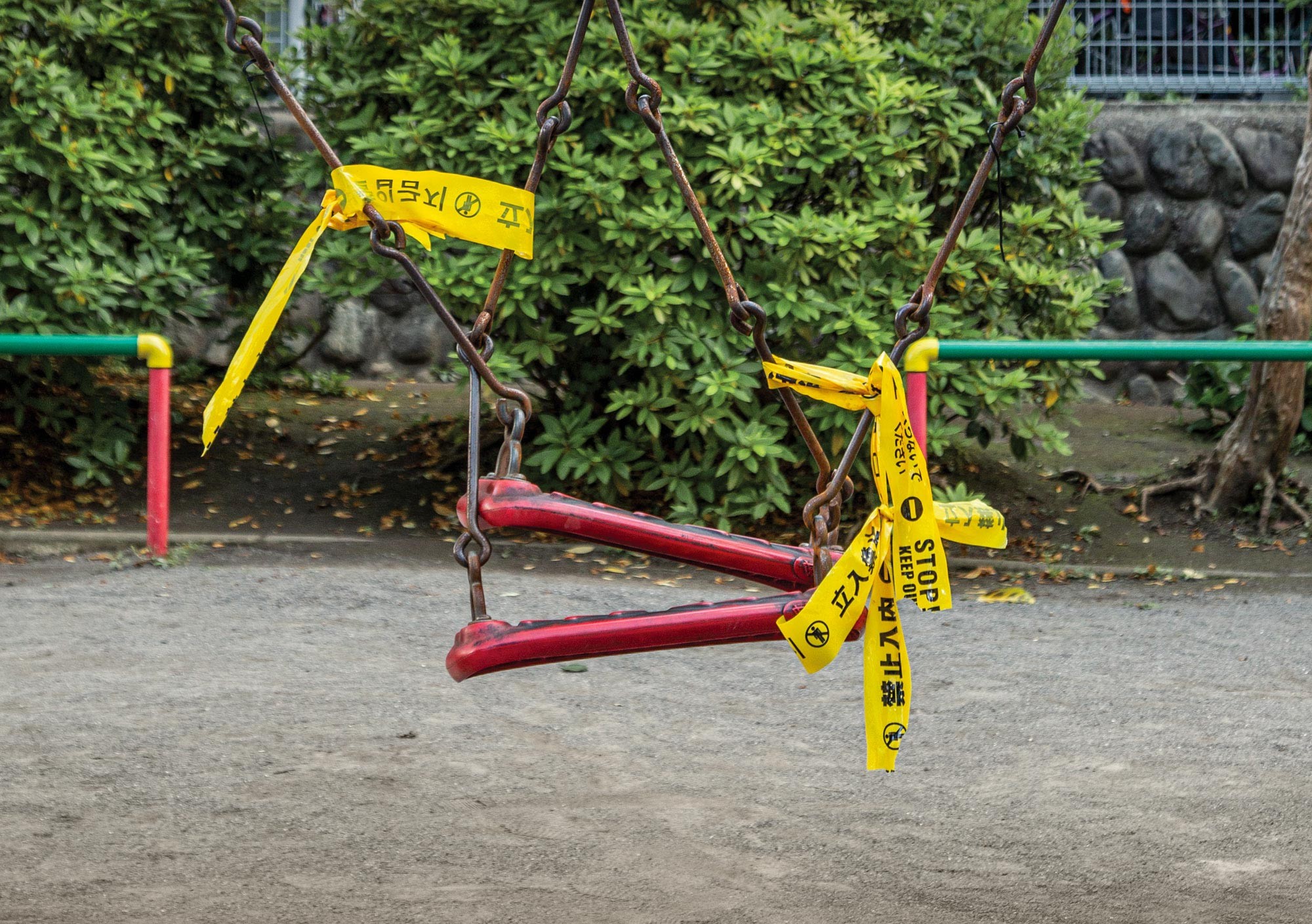 街が自粛期間に入ったばかりの数ヶ月間、東京の公園や遊び場は封鎖されていました。ブランコは黄色いテープで縛られ、滑り台はまるで未完成の彫刻のようにラッピングされていたのを覚えています。